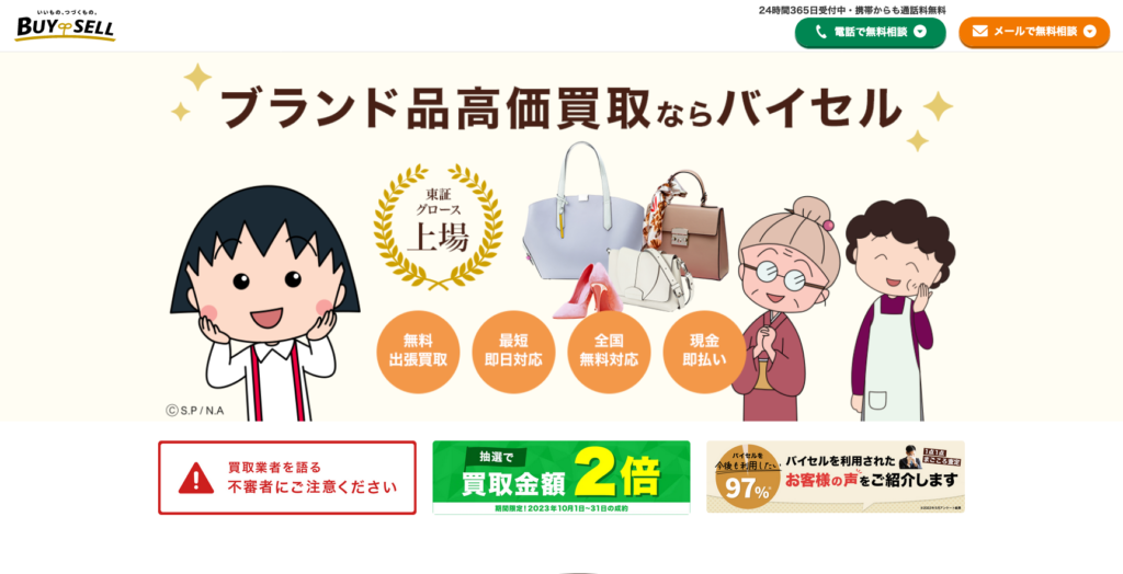 【無料査定】「ブランド高価買取ならバイセル」ちびまる子ちゃんでお馴染みのバイセルで不用品をお金に。